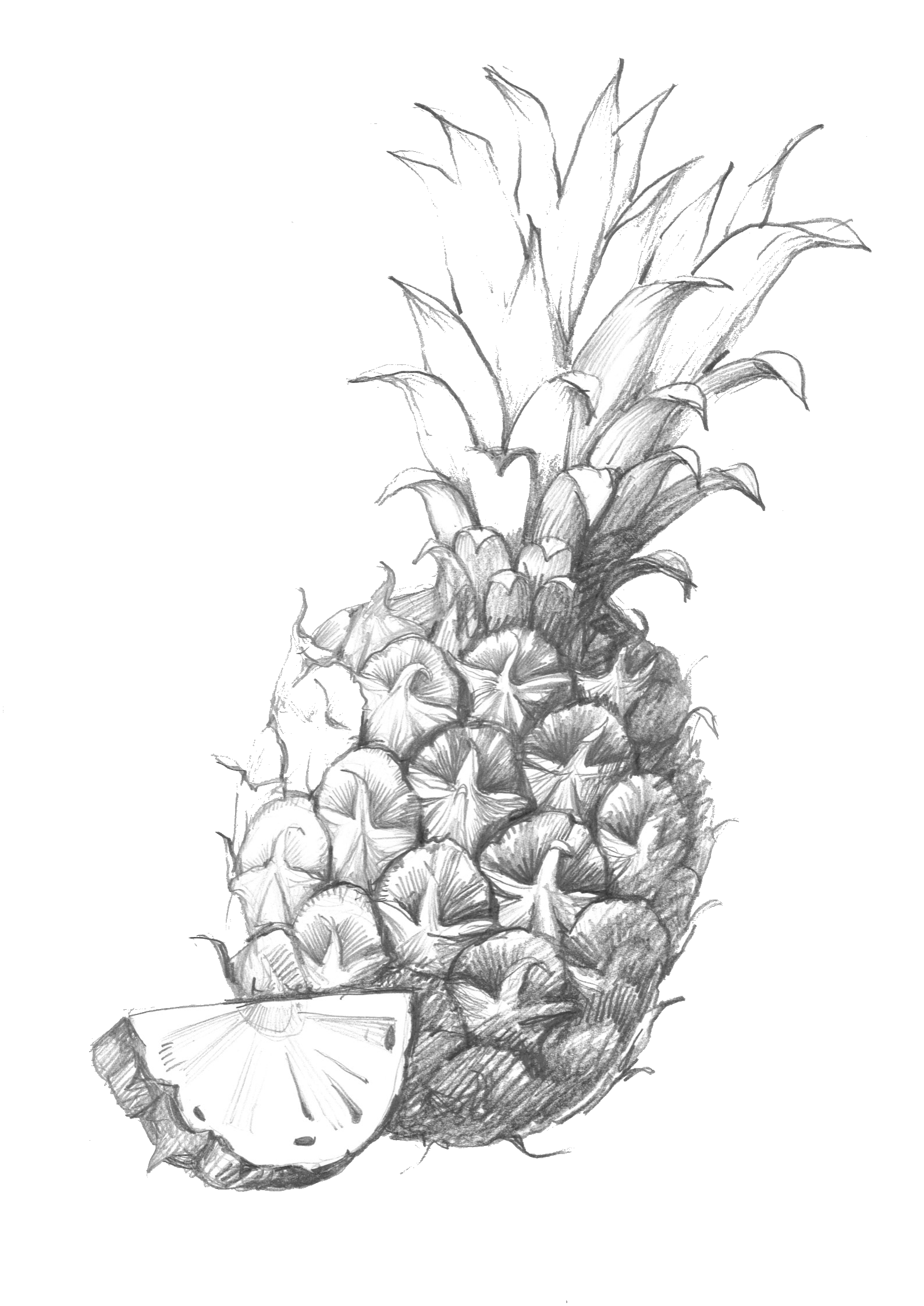 РЕЗУЛЬТАТ: готовая иллюстрация с блестящим бокалом и готовый контрастный скетч с фактурным ананасом.